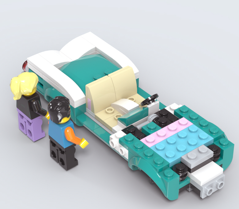 60~70년대 차량의 독특한 곡선을 잘 살린 트렁크 부분을 조립하고,