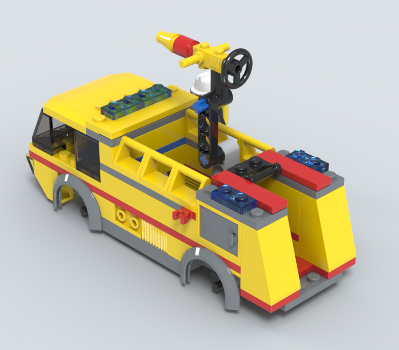 차량 뒤쪽 지붕에 미니피겨를 올려서 물을 분사하는 연출도 가능합니다.