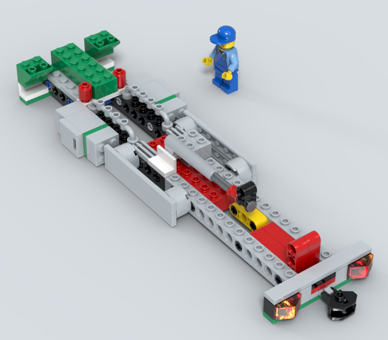 경사면 브릭을 사용한 후미등 표현이 좀 독특하고, 뒷부분 연결을 위한 조인트 암 브릭도 보입나다.