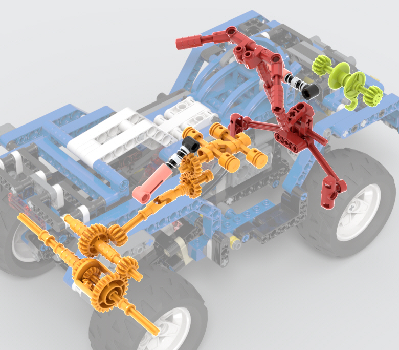 뒷바퀴와 연결된 엔진 피스톤 기믹은 1번 모델과 유사하고,