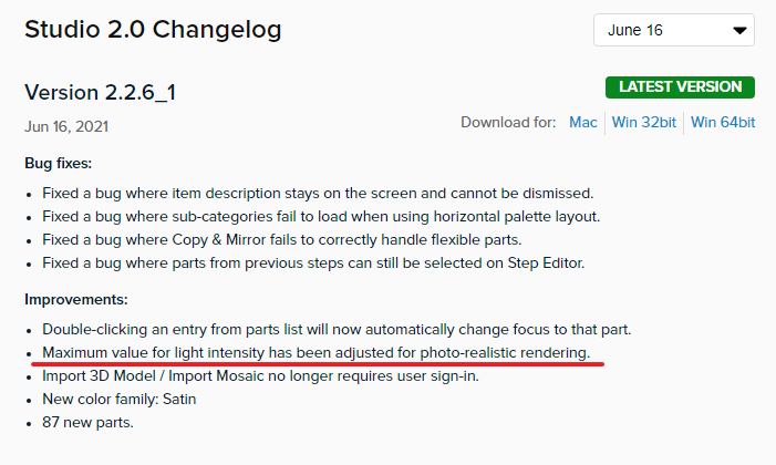 2.2.6_1 버전에서 포토리얼리스틱 렌더링 옵션 중, 빛의 강도를 설정하는 최대 값을 조절했다는 내용입니다.