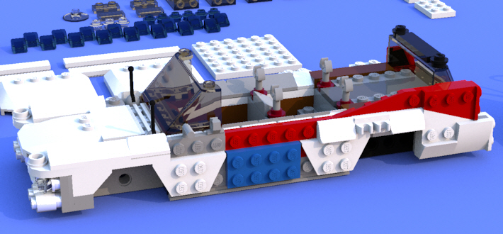차량 옆쪽 창문의 그 미묘한 각도를 살리기 위해 꽂아주는 Y자형 손잡이 브릭이 충돌이 일어나는 바람에, 창문들이 공중부양되어있습니다.