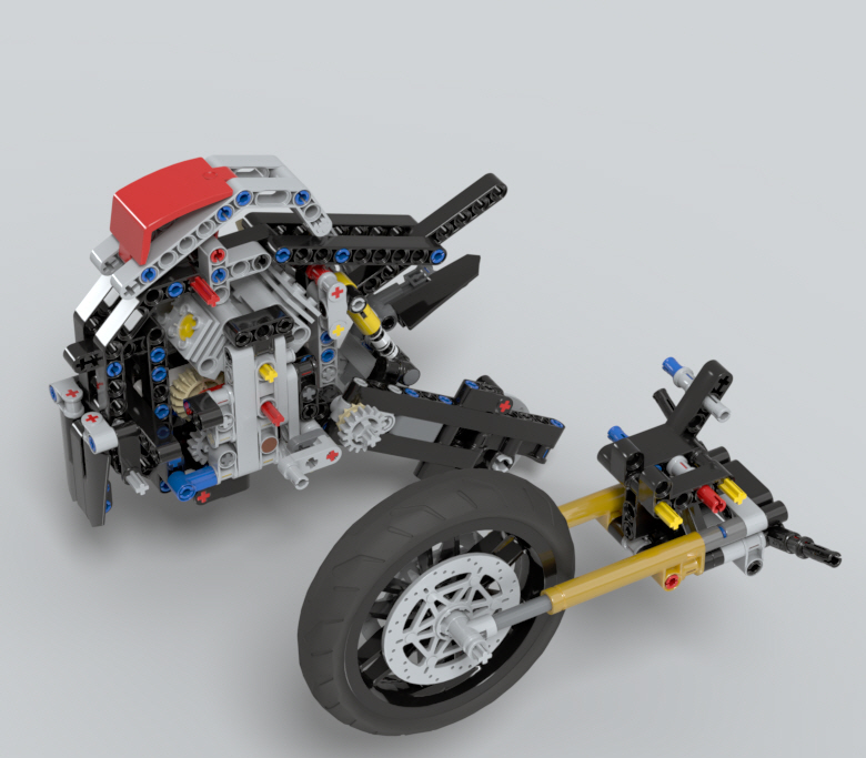 뒷바퀴 묘사에도 브레이크 패드 전용 브릭을 사용하여 사실감을 더했습니다.