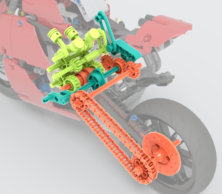 일부 동력전달이나 기어 변속 부분에는 고무줄 브릭을 사용했습니다.