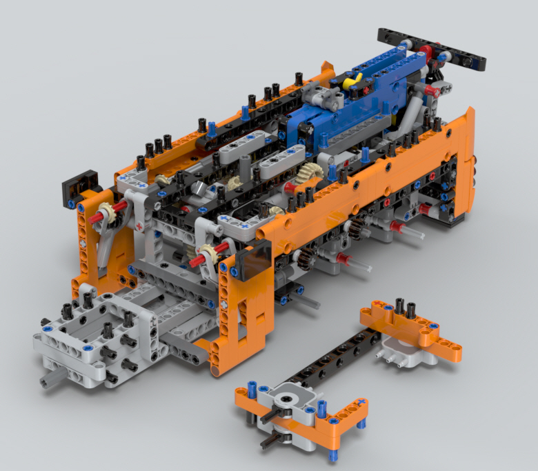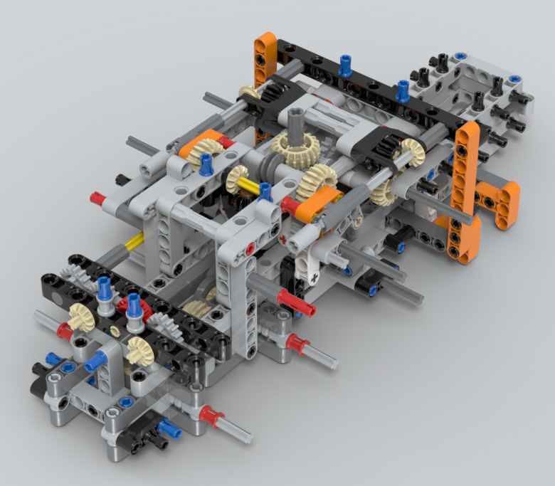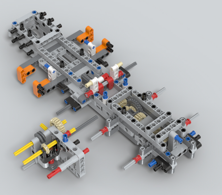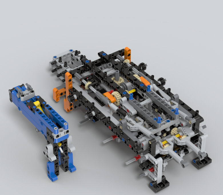 옆구리와 뒤쪽에 있는 아웃리거를 조작하기 위한 기어들을 조립중입니다.