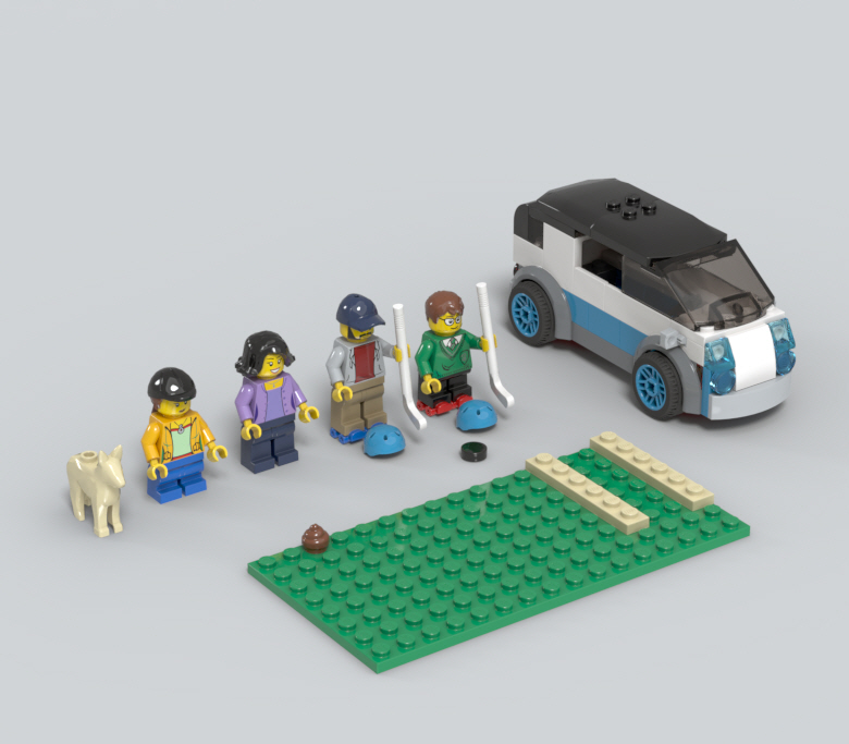 미니피겨 4개와 전기 승합자를 조립했습니다.