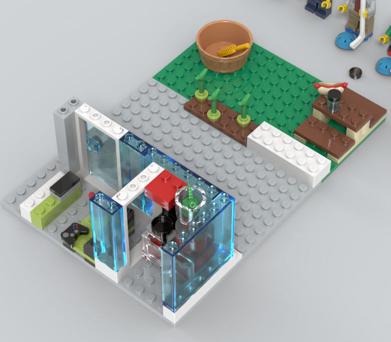 야외 테이블과 작은 텃밭, 그리고 집 내부 공간을 살짝 조립했습니다.