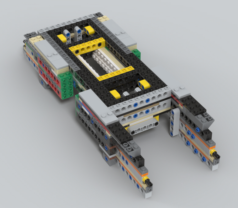 테크닉 브릭들을 겹겹이 쌓아서 다리를 붙잡고 있는 받침대를 조립합니다.