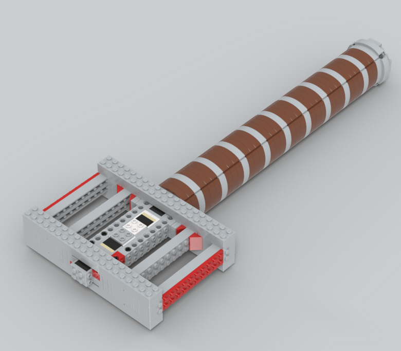곡면 브릭으로 손잡이를 덮고, 망치 머리 부분을 조립합니다.