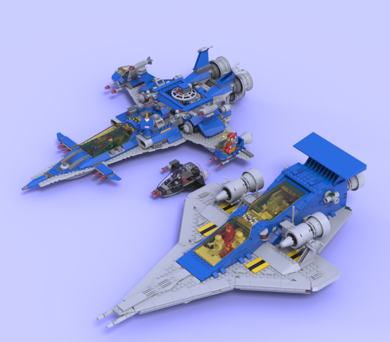 6985 우주전함: 좌측, 파란색. 6783과 같은 1986년에 나온 대형 제품입니다. 부분별로 탈착이 가능하며, 제일 뒤쪽은 우주 기지로도 변신하는 재미있는 제품이죠.