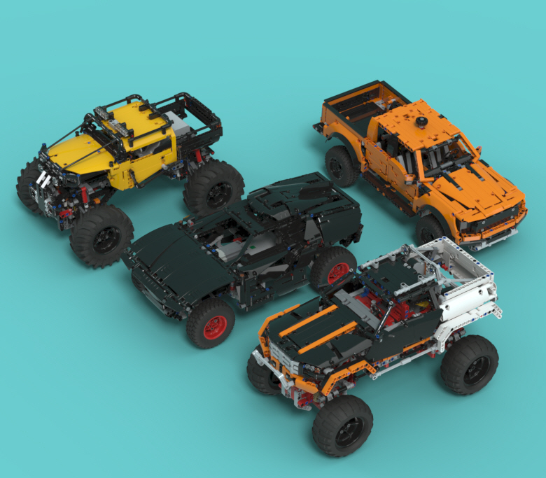 42126 포드 F-150 랩터: 우측 상단. 2021년 테크닉 차량입니다. RC 제품은 아니지만, RC개조를 위한 빈칸이 있는 제품이라 비교해봤습니다. 크기도 비슷비슷하고..