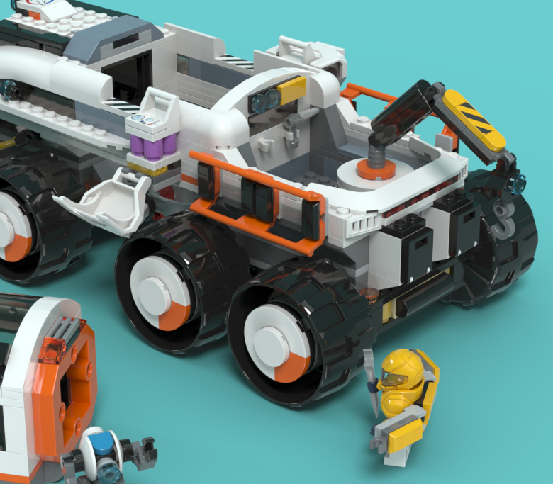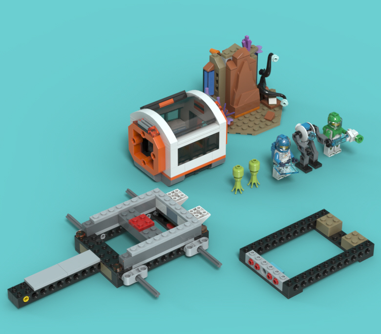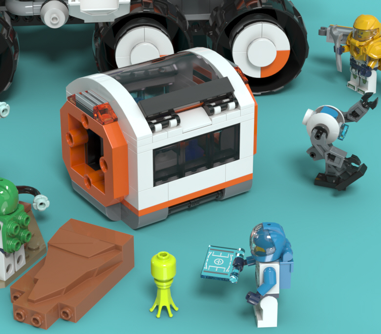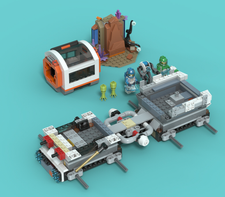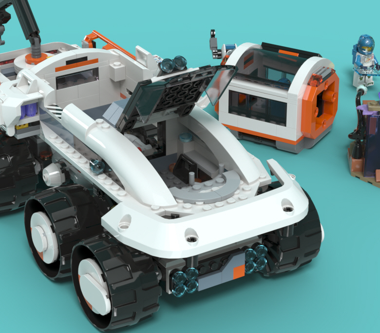 31107 우주 탐사 차량: 좌측 하단. 2020년 크리에이터 3in1 제품 중 하나입니다. 은근 60432와 비슷한 부분이 있습니다. 외계인도 녹색이고..