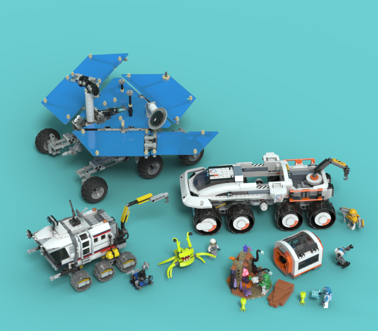 7471 화성 탐사 차량: 좌측 상단. 2003년에 나왔던 '디스커버리' 협업 제품입니다. 실제 화성에서 돌아다녔던 '오퍼튜니티'의 레고 버전이죠.