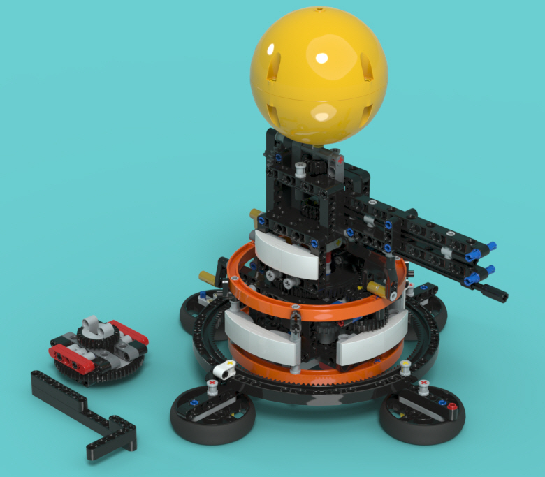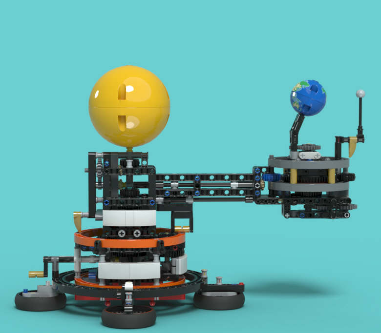 기울어진 자전축까지 표현된 지구와 달을 조립하여 얹으면 완성!