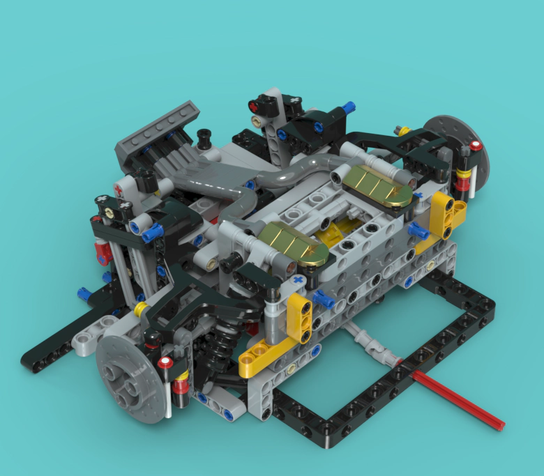 그 위에는 투명색 피스톤 하우징 브릭을 사용해서 V8엔진도 만들었습니다.