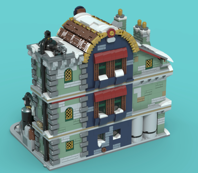 건물의 뒷편 양 끝에 힌지 브릭이 들어갑니다.
