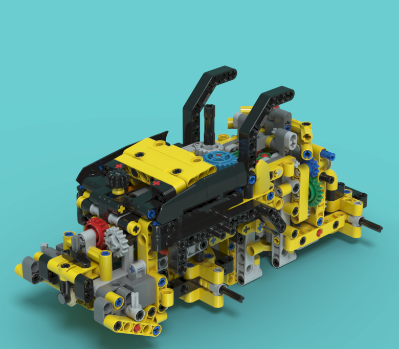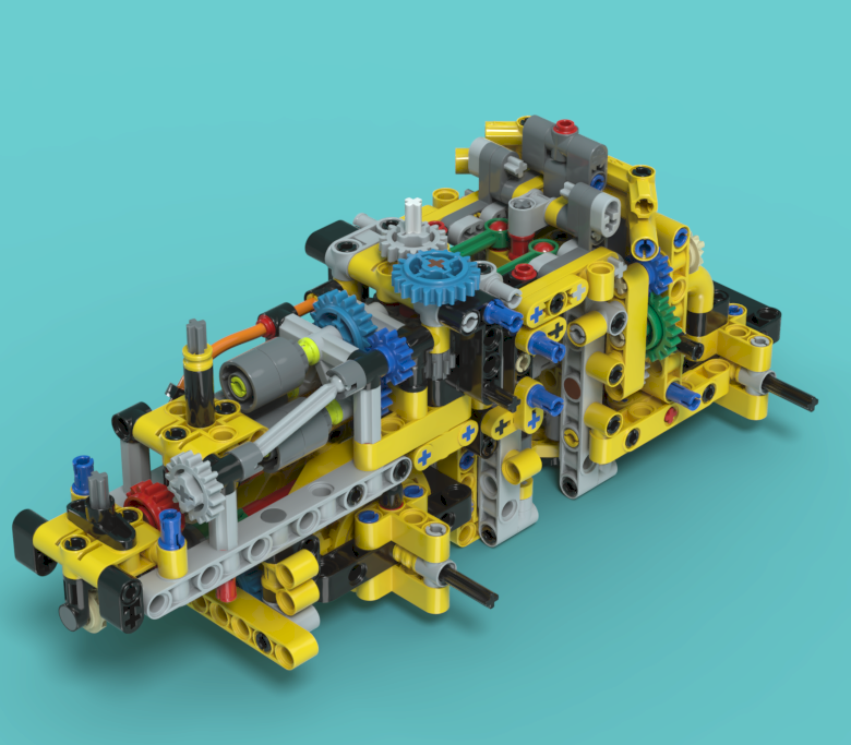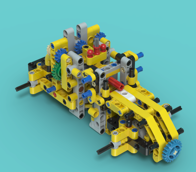 앞쪽과 뒤쪽을 조인트암으로 연결하고, 기어들은 2중으로 설계되어 있습니다.