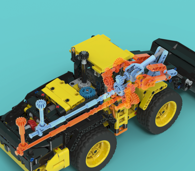 앞쪽의 삽을 조작하는 기어의 축도 2개 추가로 지나갑니다.