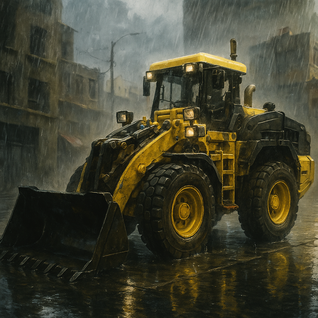 단독샷은 비오는 날 주차해놓은 휠로더입니다.
