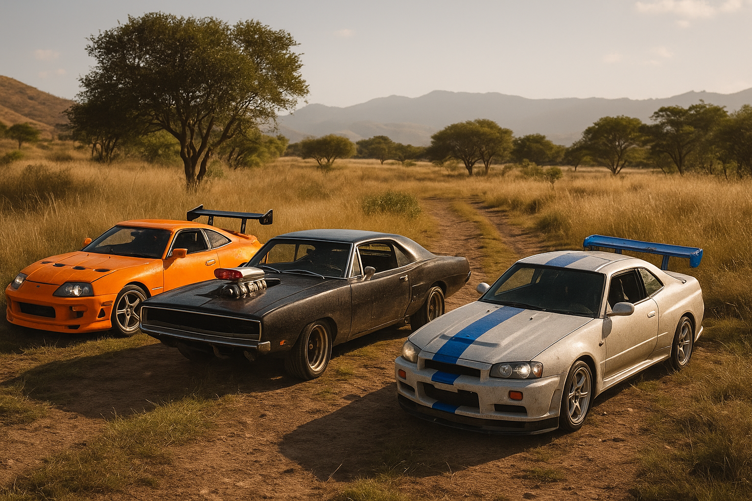 다른 '분노의 질주' 차량들과 함께.