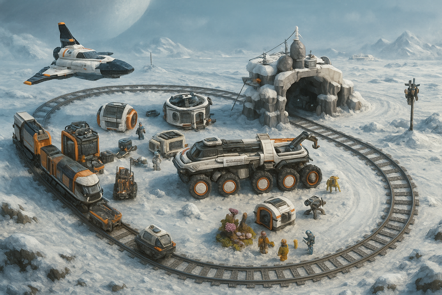 크기 비교샷을, 눈덮힌 외계행성 탐사하는 컨셉으로 다시 그렸습니다.