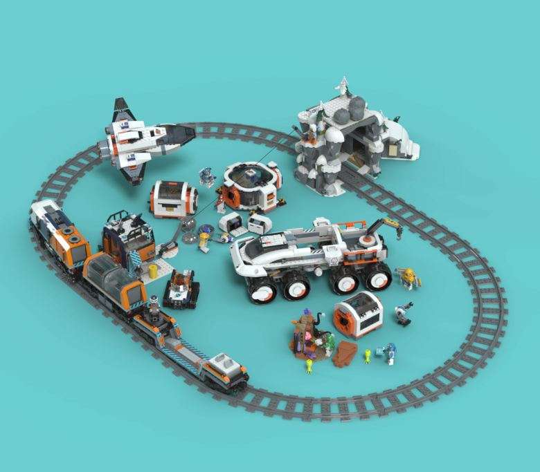 60446 모듈방식 은하계 우주선: 중앙 좌측편 우주선과 기지. 2025년 시티 제품입니다.
