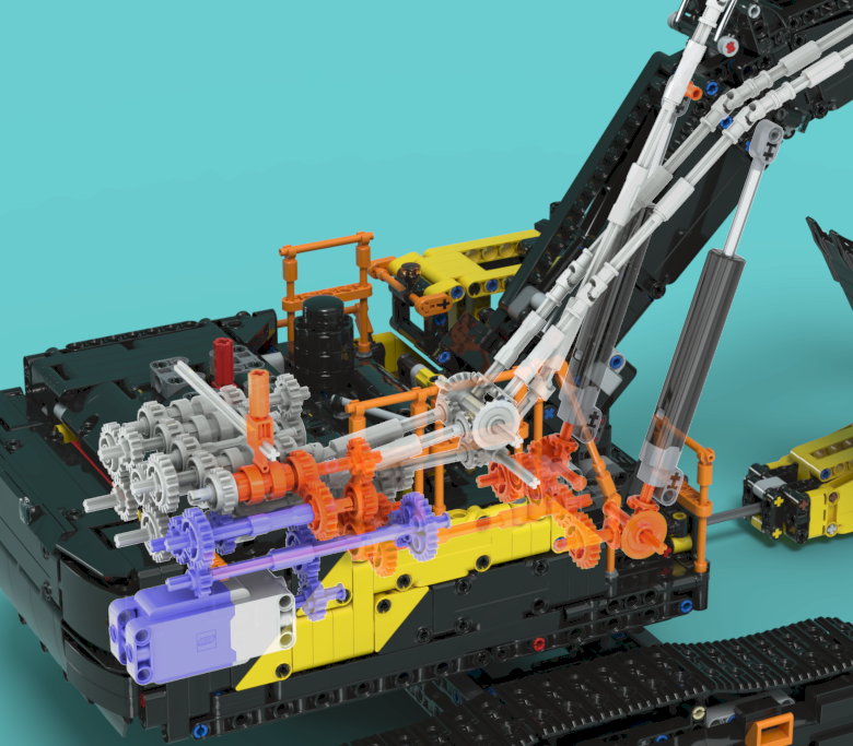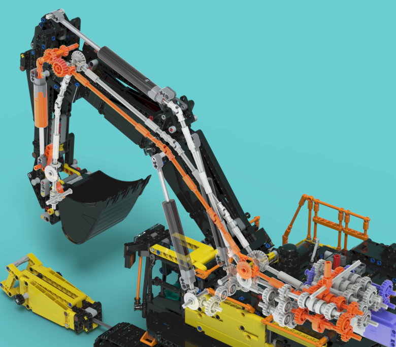 노란색 브릭들로 만든 쇄빙용 해머(Breaker라도고도 하더군요)를 탈착할 때 이 기어를 풀어줘야합니다.
