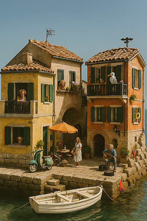 안그래도 지중해 하면 휴양지로 알려져 있는데, 이런 아기자기하고 밝은 느낌이라서, 더 휴양하는 느낌이 있을듯 합니다.
