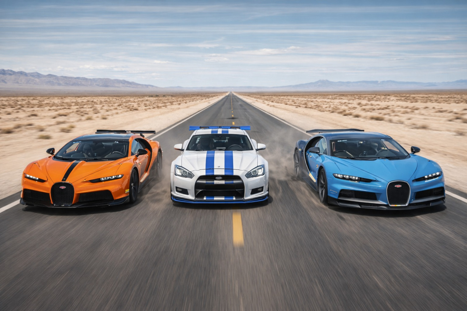 사막 위의 도로를 질주하는 모습으로 리터칭을 해봤습니다.