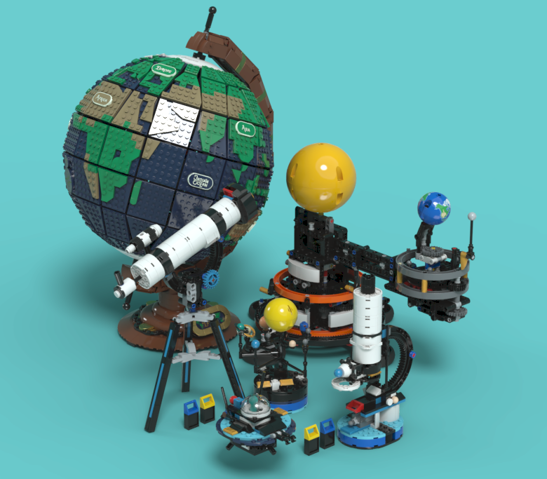 42179 공전하는 지구와 달: 중앙 우측. 2024년 테크닉 제품입니다. 의외로 꽤 정확한 메커니즘을 구현해서 매력적인 제품입니다.