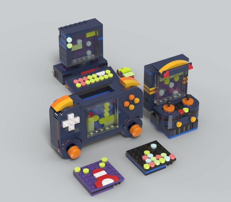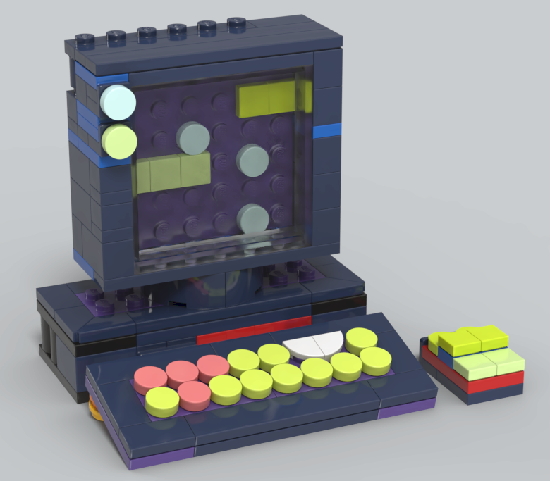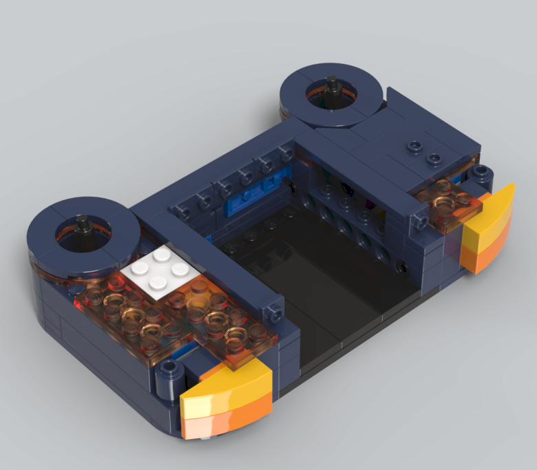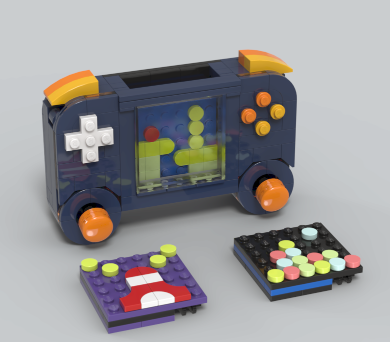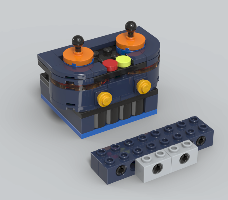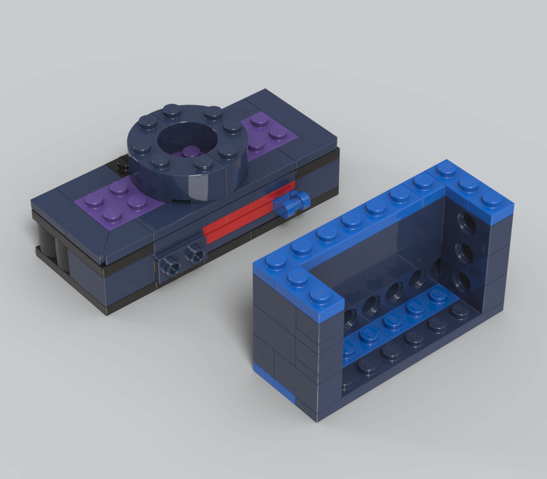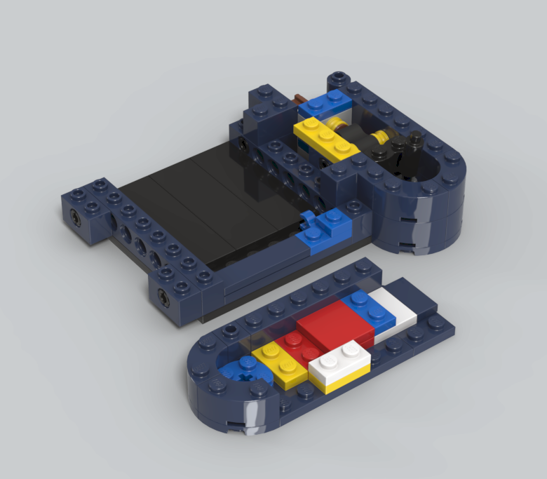 렌더링샷 우측 상단 방향에 보면, 노란색과 파란색 브릭 사이에 고무 브릭이 보이는데요.