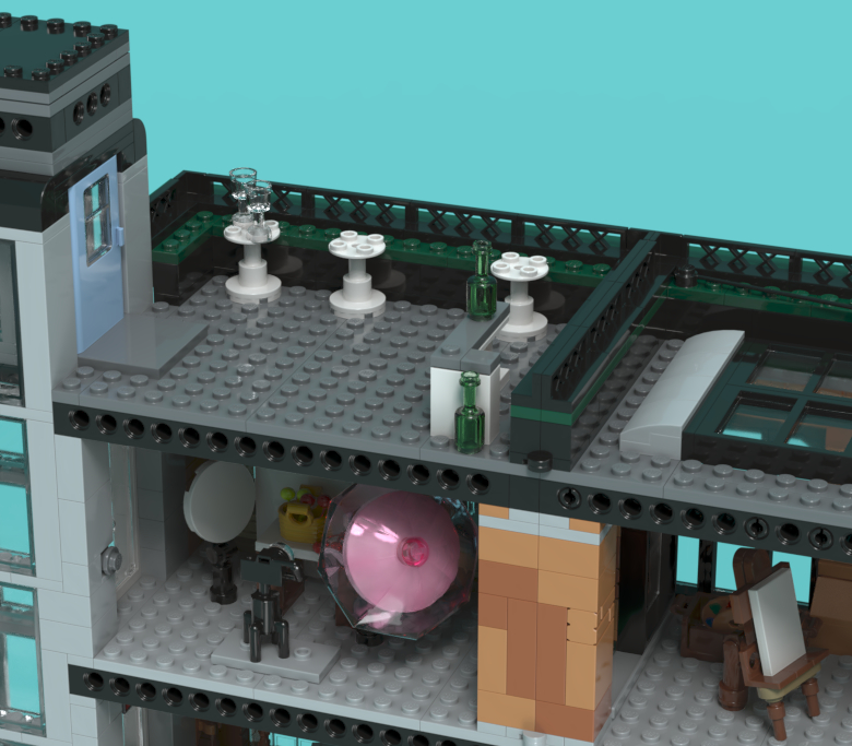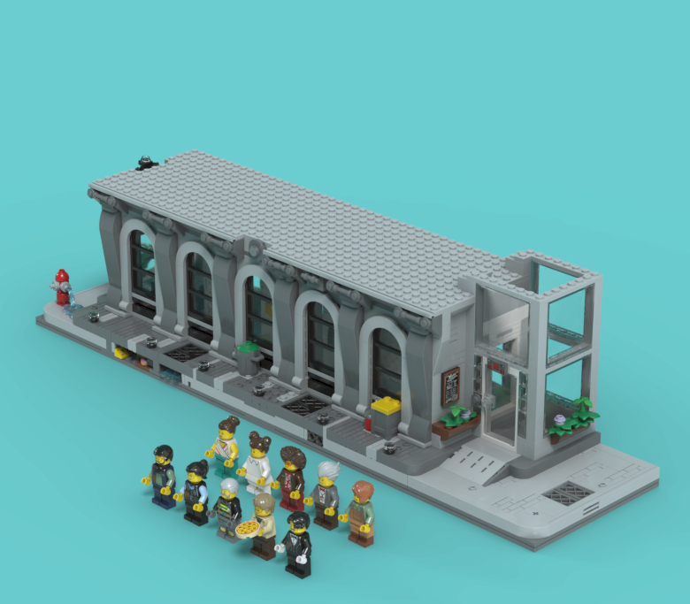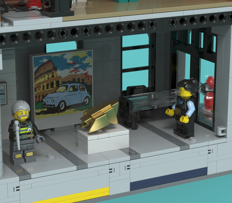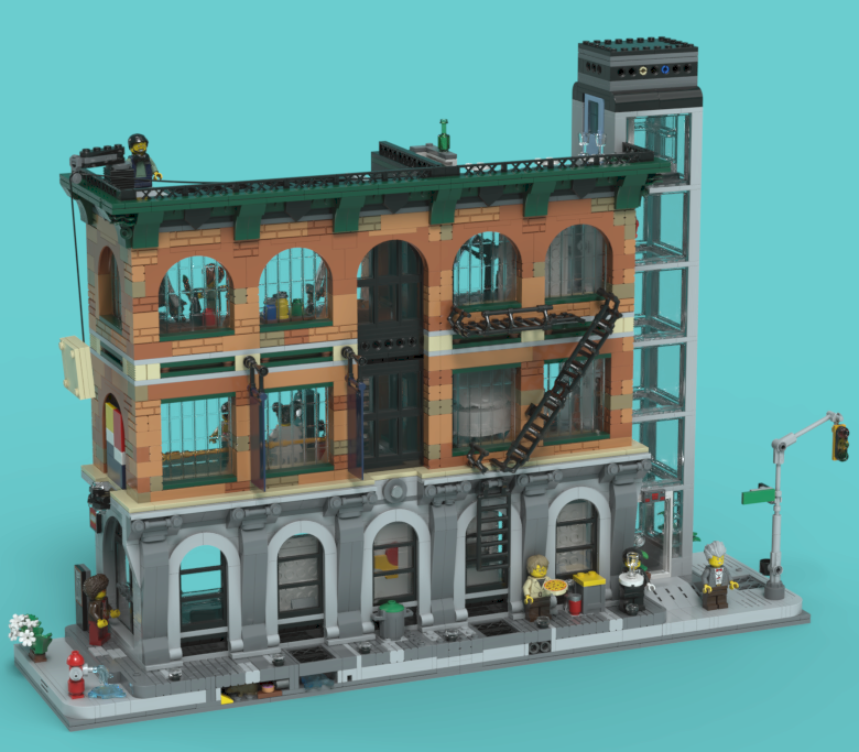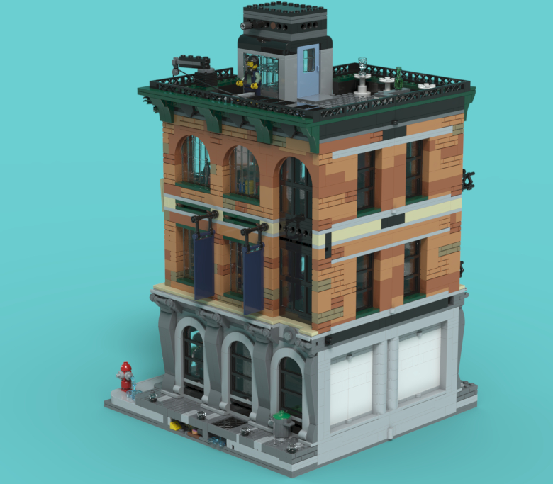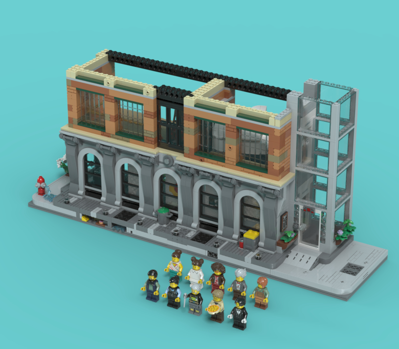 910054에는 옆구리에 테크닉핀으로 연결하는 부분이 없어서 모듈러와 같이 진열할때에는 조금 수정이 필요할듯 하네요.