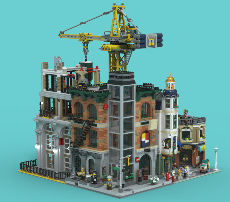 910054는 미니피겨 10개 포함하여, 총 2,566피스로구성된 접이형 건물 제품입니다.