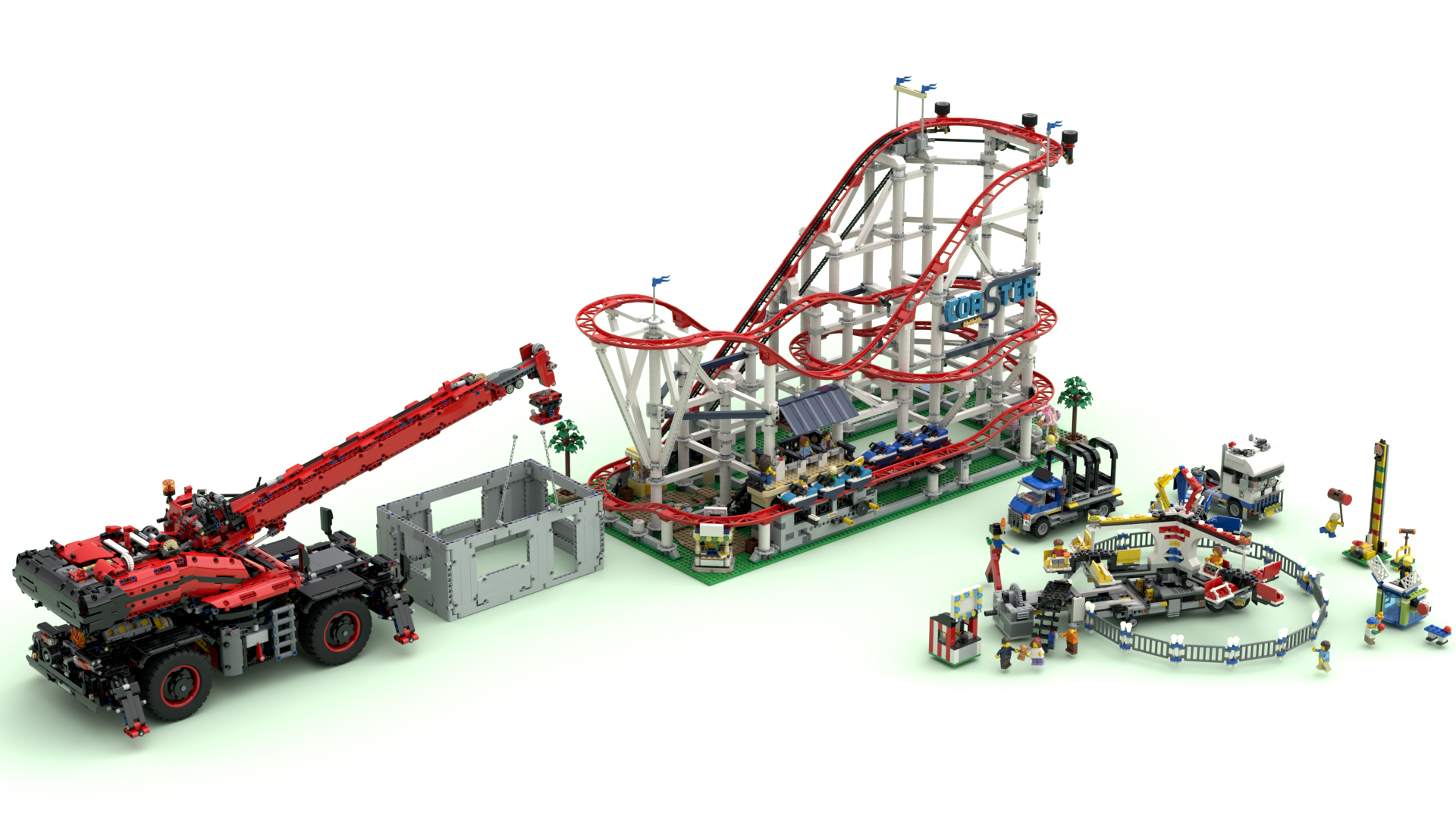 렌더링샷 오른편에 보이는 것은 크리에이터 엑스퍼트의 10244 이동식 놀이동산이고,