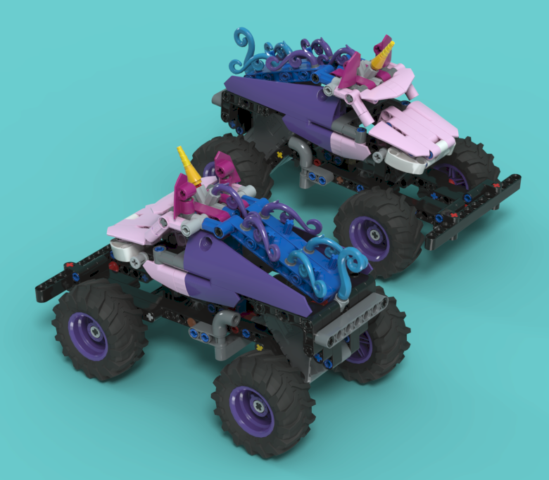 31101 몬스터 트럭: 중앙 우측 하단. 2020년에 크리에이터 3in1에서 나온 차량입니다.