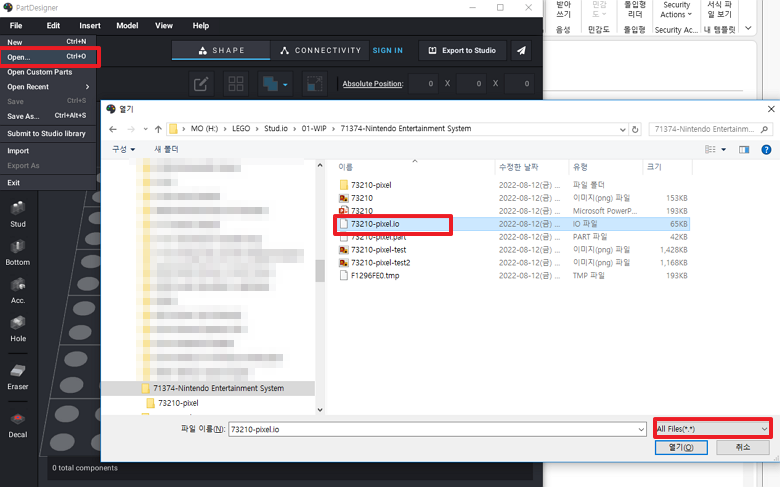 이걸 .io파일로 저장하고, 파트디자이너에서 불러옵니다.