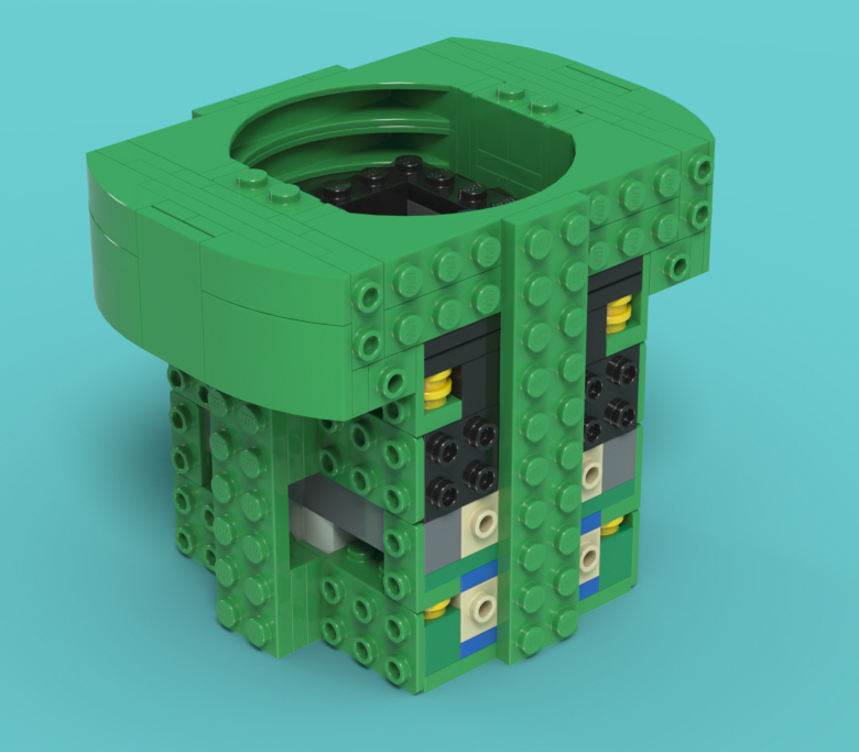 나무나 동물의 몸통 같은데 사용하던 곡면 원통 브릭을 사용하여 입술을 표현하고 있습니다.